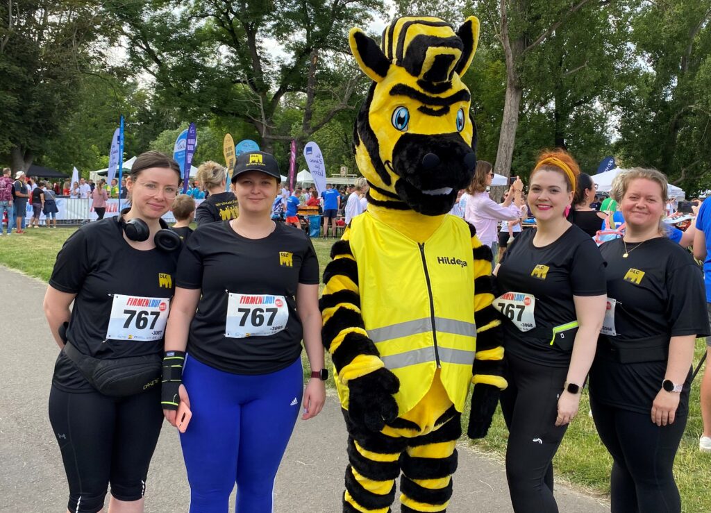 Gleich danach musste auch unser Maskottchen mit denen anderer Hallescher Organisationen an den Start. So grazil wie ein plüschiges Zebra nur sein kann, sprintete Hildegard davon, um pünktlich beim Essen dabei zu sein. Denn Laufen macht hungrig! Bei Leckereien vom Grill und einem Getränk wurden dann alte und neue Geschichten erzählt, viel gelacht, der Lauf ausgewertet und Erinnerungsfotos geschossen.